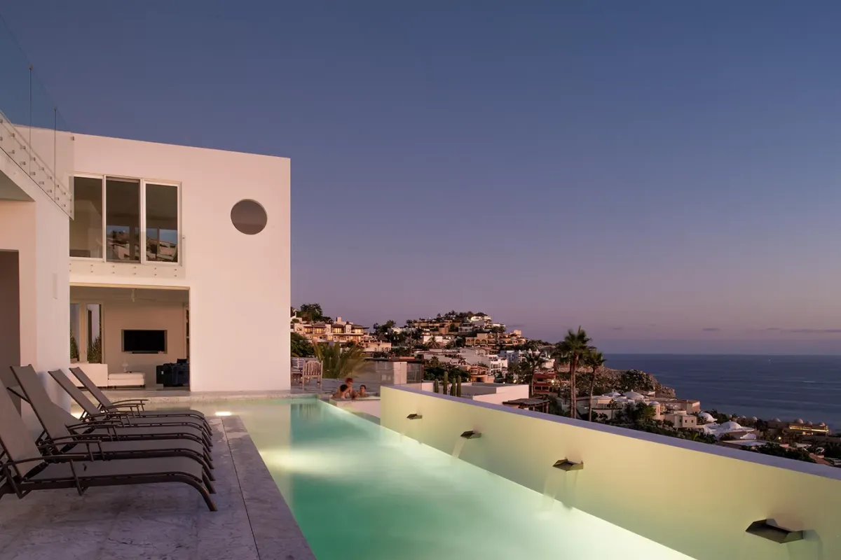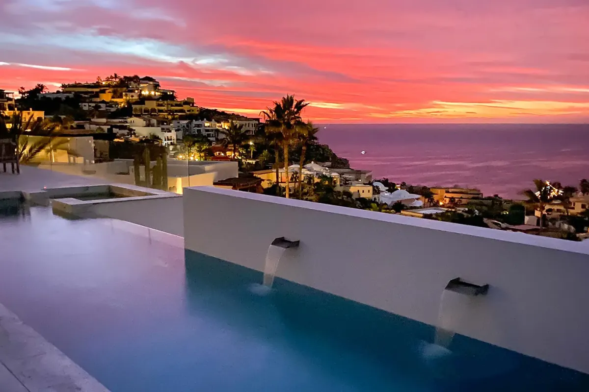 Experience contemporary elegance and impeccable design at Villa Besame, set within the prestigious gated community of Pedregal in Cabo San Lucas. Designed for exceptional privacy and seamless indoor–outdoor living, this stunning villa features a 70-foot infinity lap pool and jacuzzi overlooking panoramic ocean views. Expansive terraces, a gas fireplace, and lush garden spaces scented with roses, gardenia, and plumeria make outdoor living unforgettable. Sleek, modern architecture pairs beautifully with Pedregal’s dramatic desert hillsides and endless blue waters. Just a short walk to the beach and minutes from downtown Cabo, the location offers the perfect balance of tranquility and convenience. Villa Besame is situated in a secure, gated enclave that also hosts the world-renowned Resort at Pedregal.