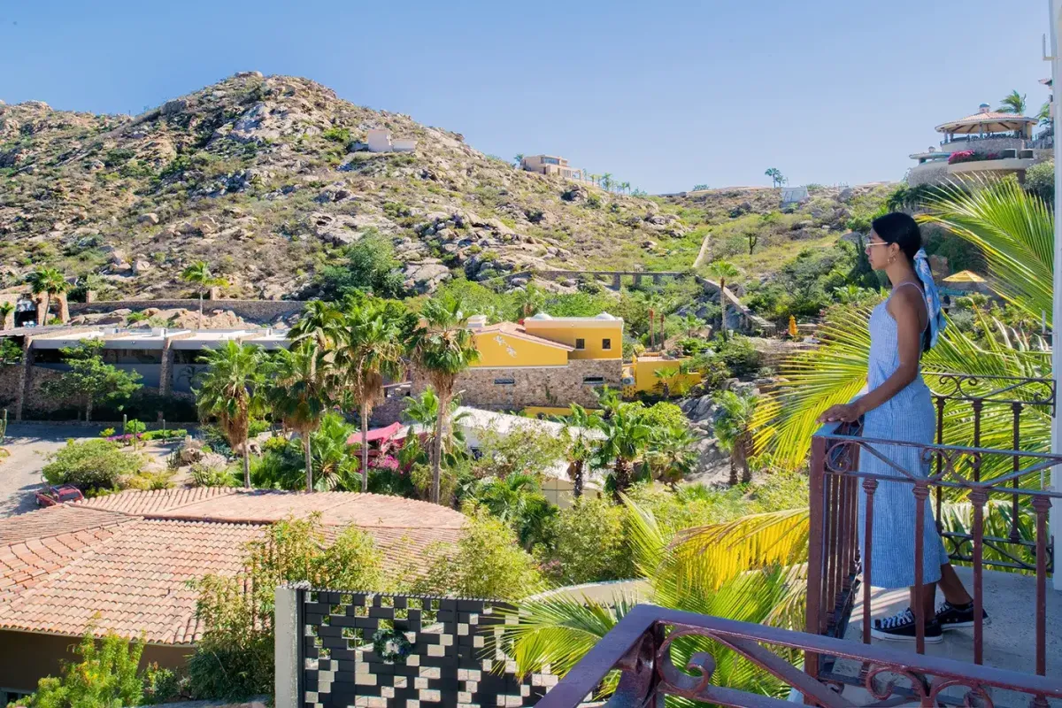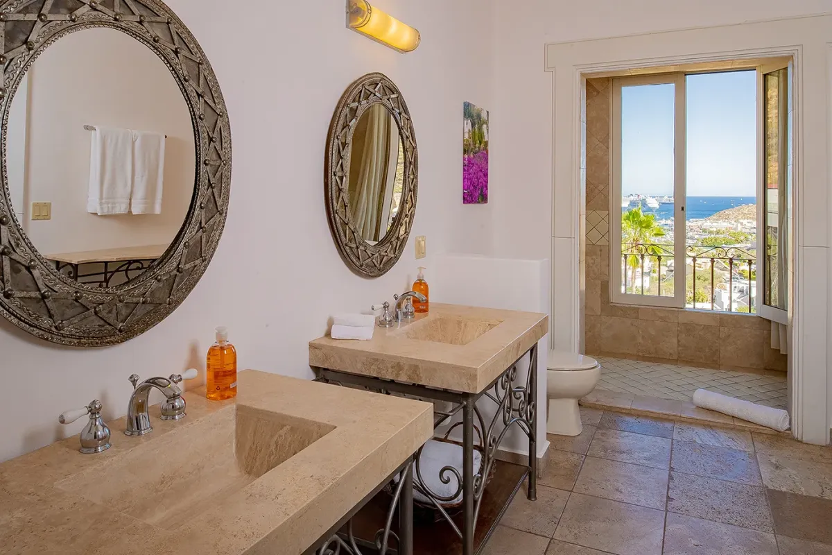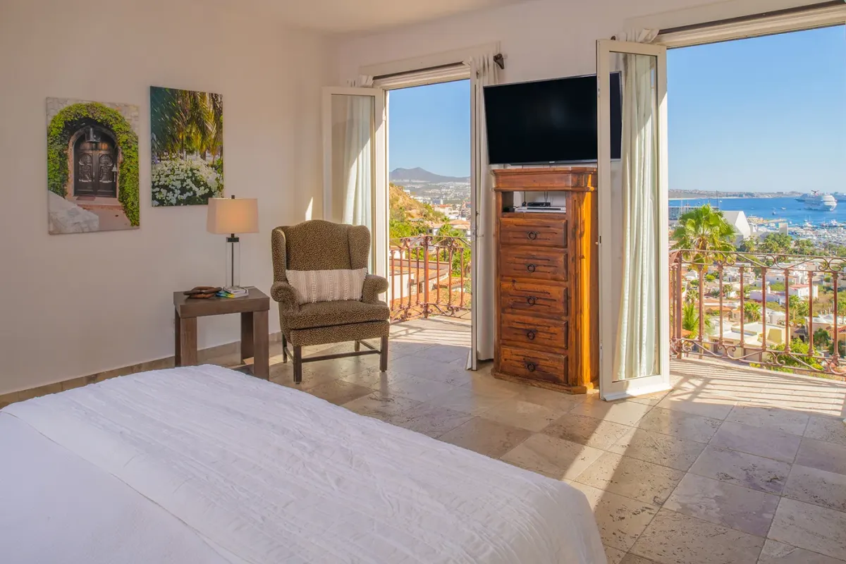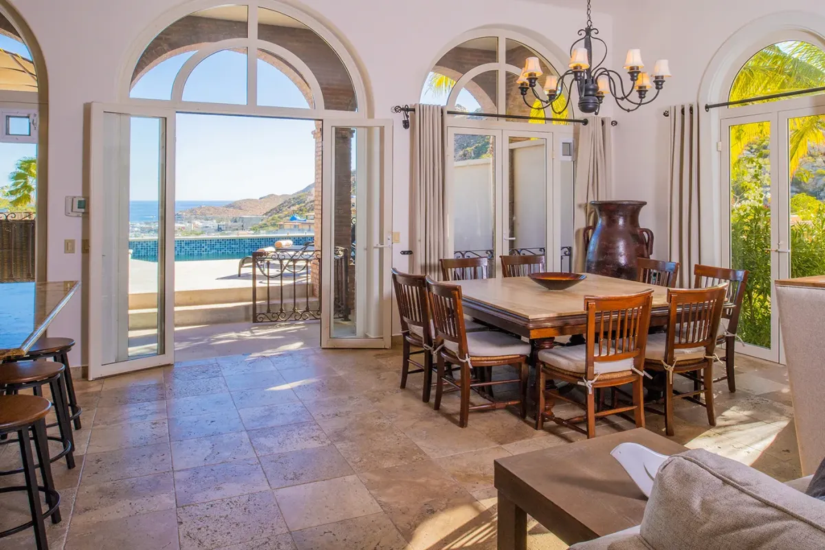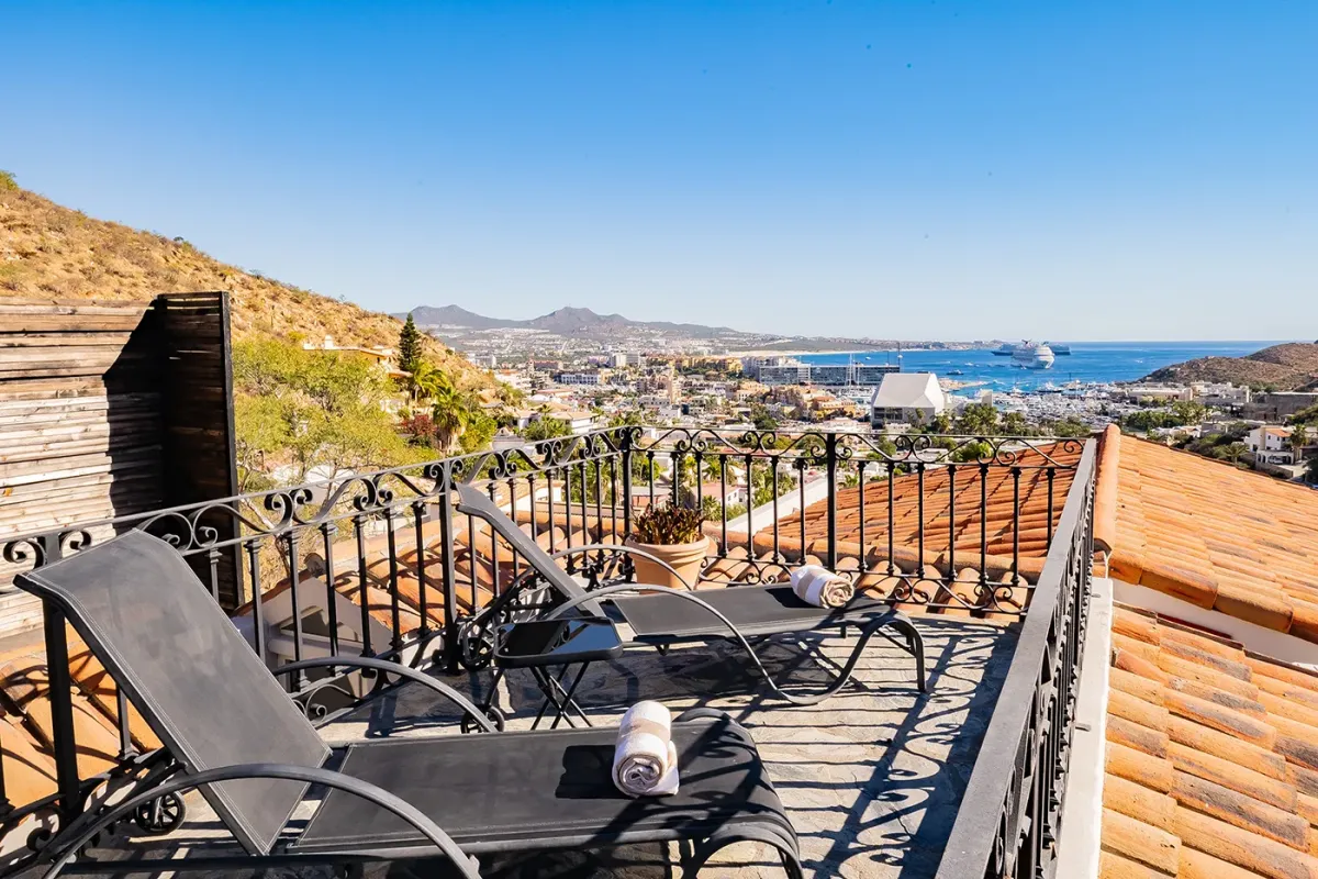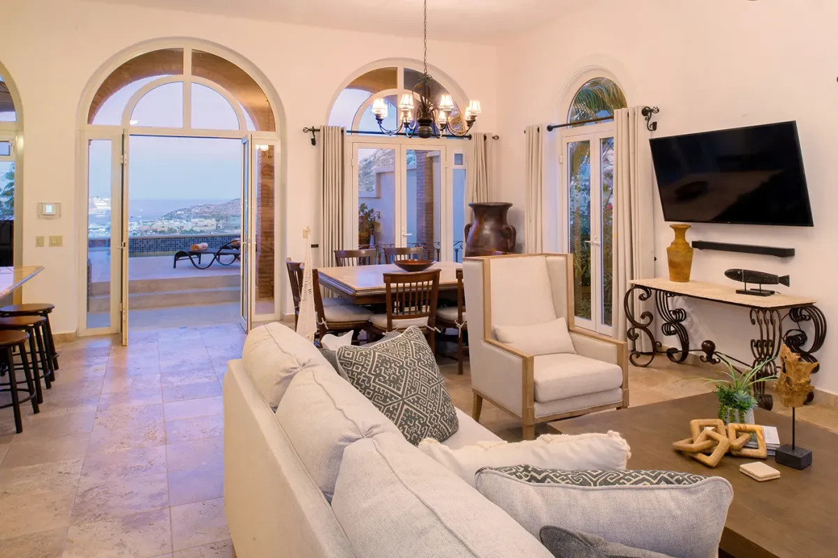 With its graceful arched windows, terracotta tones, and panoramic perch above Cabo San Lucas, Villa Buena Vista lives up to its name — “beautiful view.” From its elevated position in the prestigious Pedregal community, this classic villa captures the best of Cabo: the sparkling Sea of Cortez, the bustling marina, and the twinkling city lights that come alive at night.