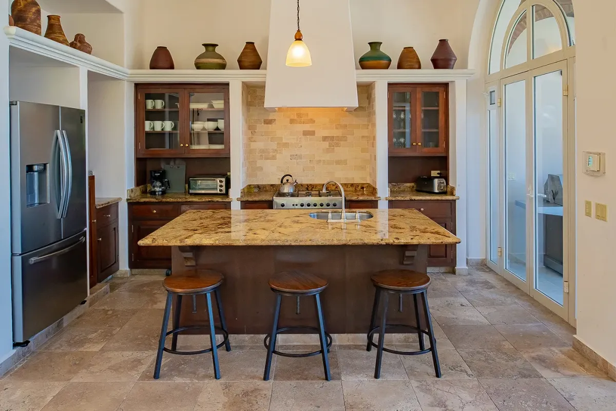 Inside, Villa Buena Vista blends traditional charm with luxurious touches. Marble floors run throughout the home, reflecting soft natural light, while granite and marble countertops add an elegant finish to the kitchen and baths. Every room feels bright, open, and thoughtfully designed to make the most of the surrounding scenery.