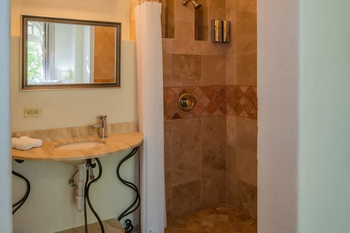 Each of the villa’s spacious bedrooms includes a private ensuite bath, ensuring both comfort and privacy for every guest. The primary suite is a true highlight — complete with a balcony terrace overlooking the sea, where you can wake to ocean breezes and fall asleep to the sound of distant waves.