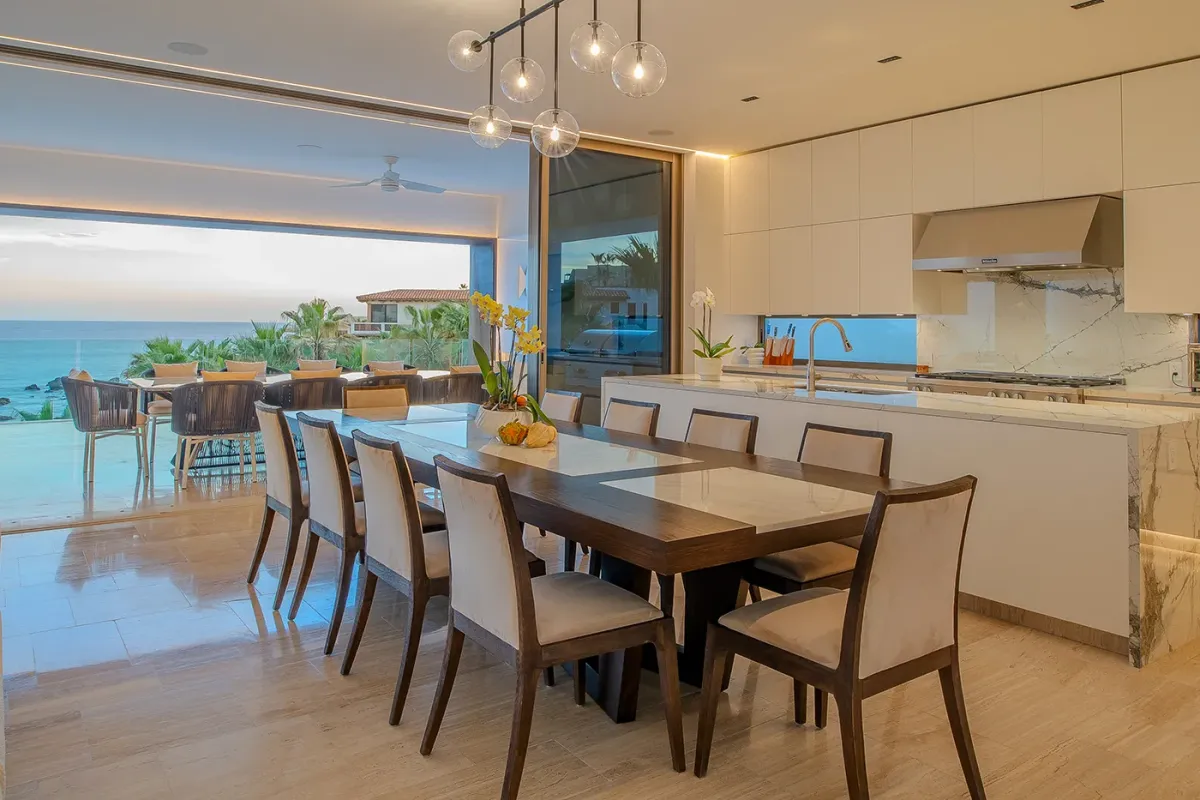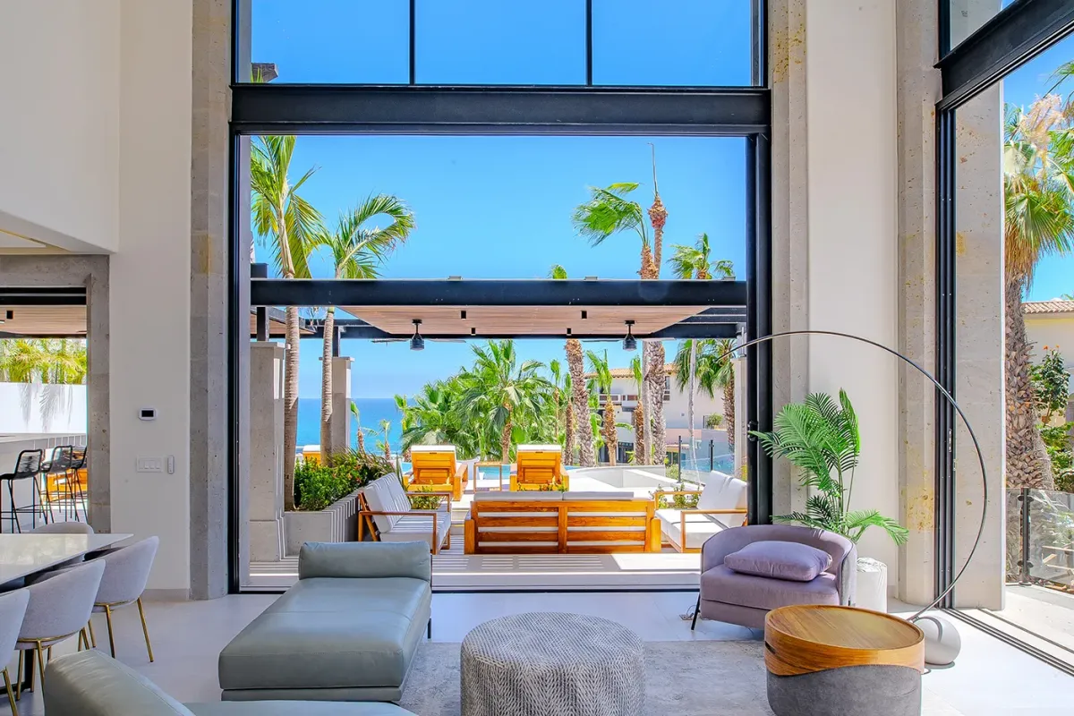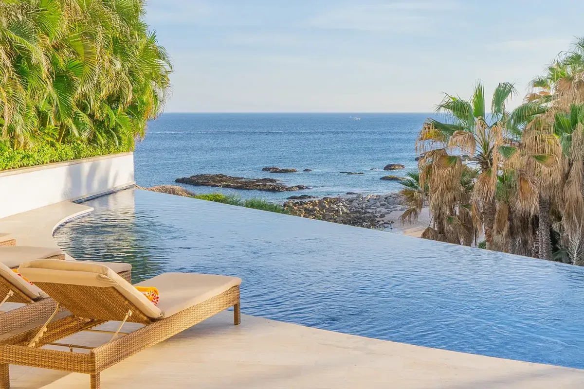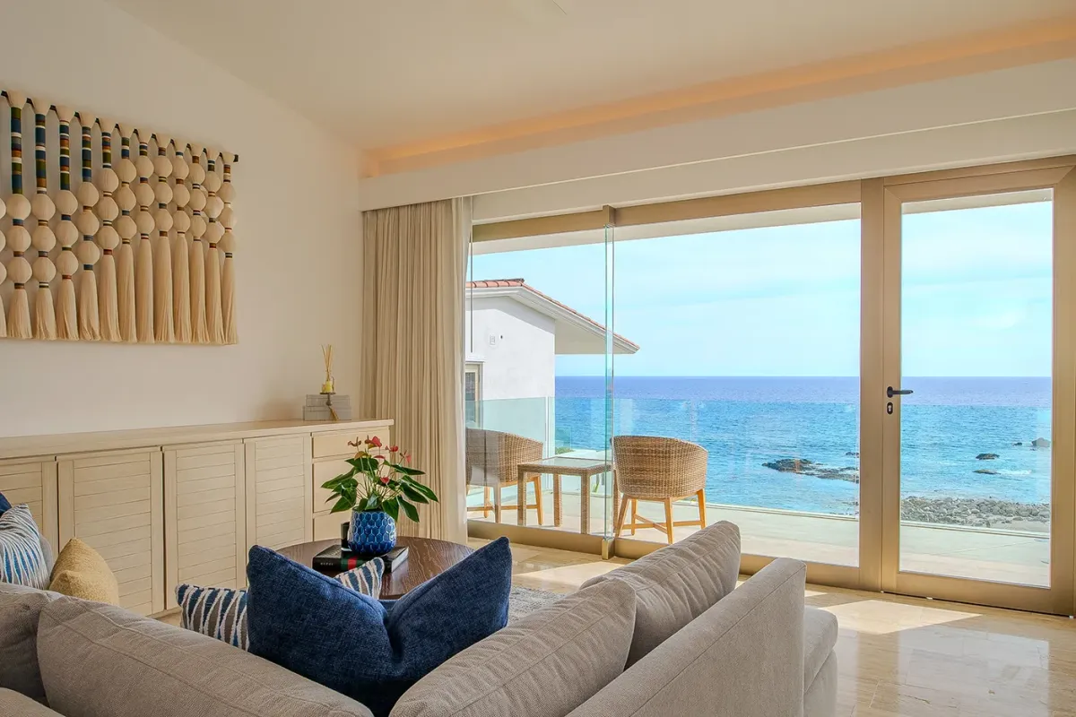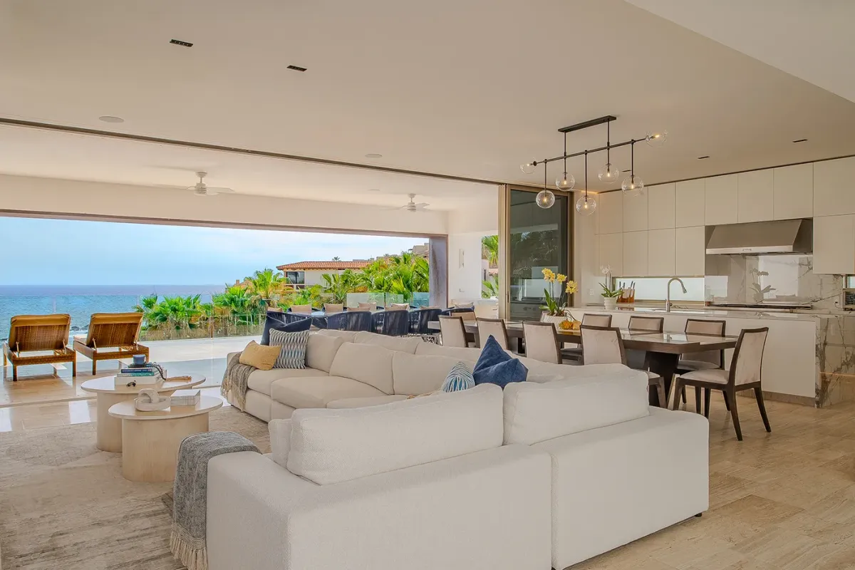 Villa Palma and Villa Mareas together create one of the most extraordinary beachfront luxury retreats in Los Cabos. Located side by side along a rare swimmable beach in the exclusive Cabo Bello corridor, these two stunning estates offer the perfect setup for large groups, multi-generational families, corporate retreats, or milestone celebrations seeking space, privacy, and elevated design. When reserved together, the villas provide expansive indoor-outdoor living, seamless group flow, and breathtaking Sea of Cortez views from nearly every room.