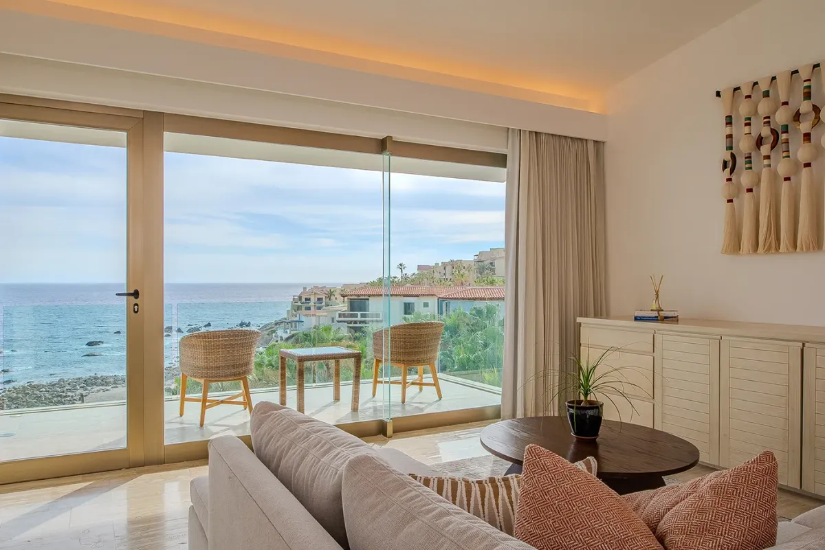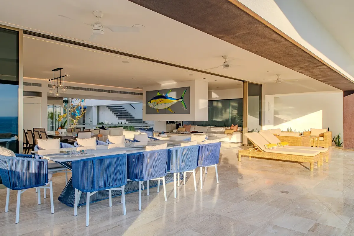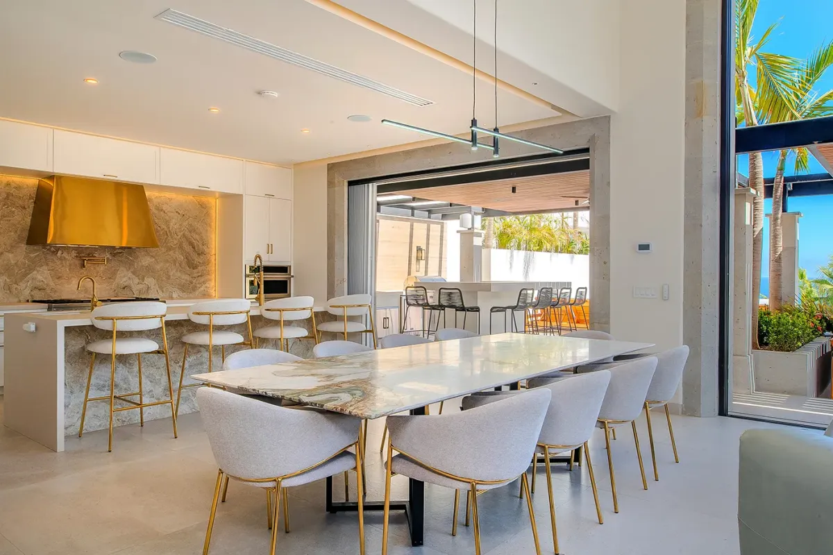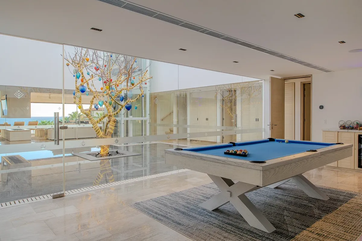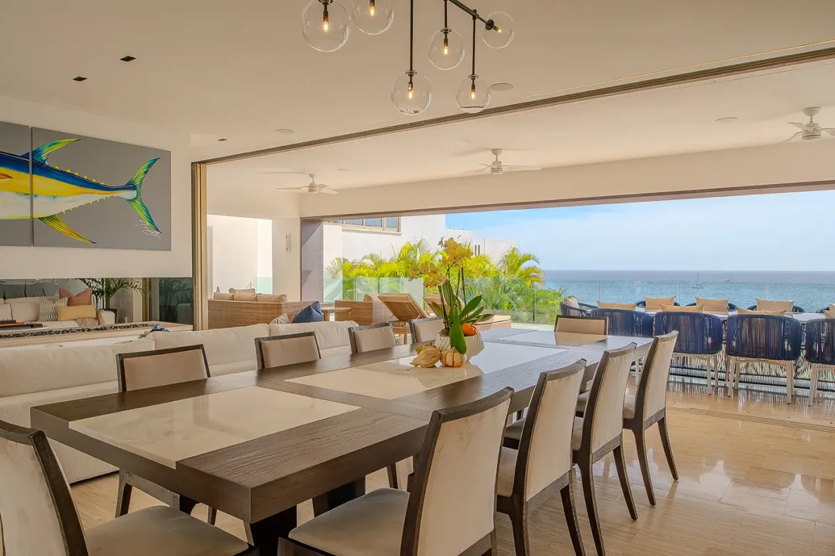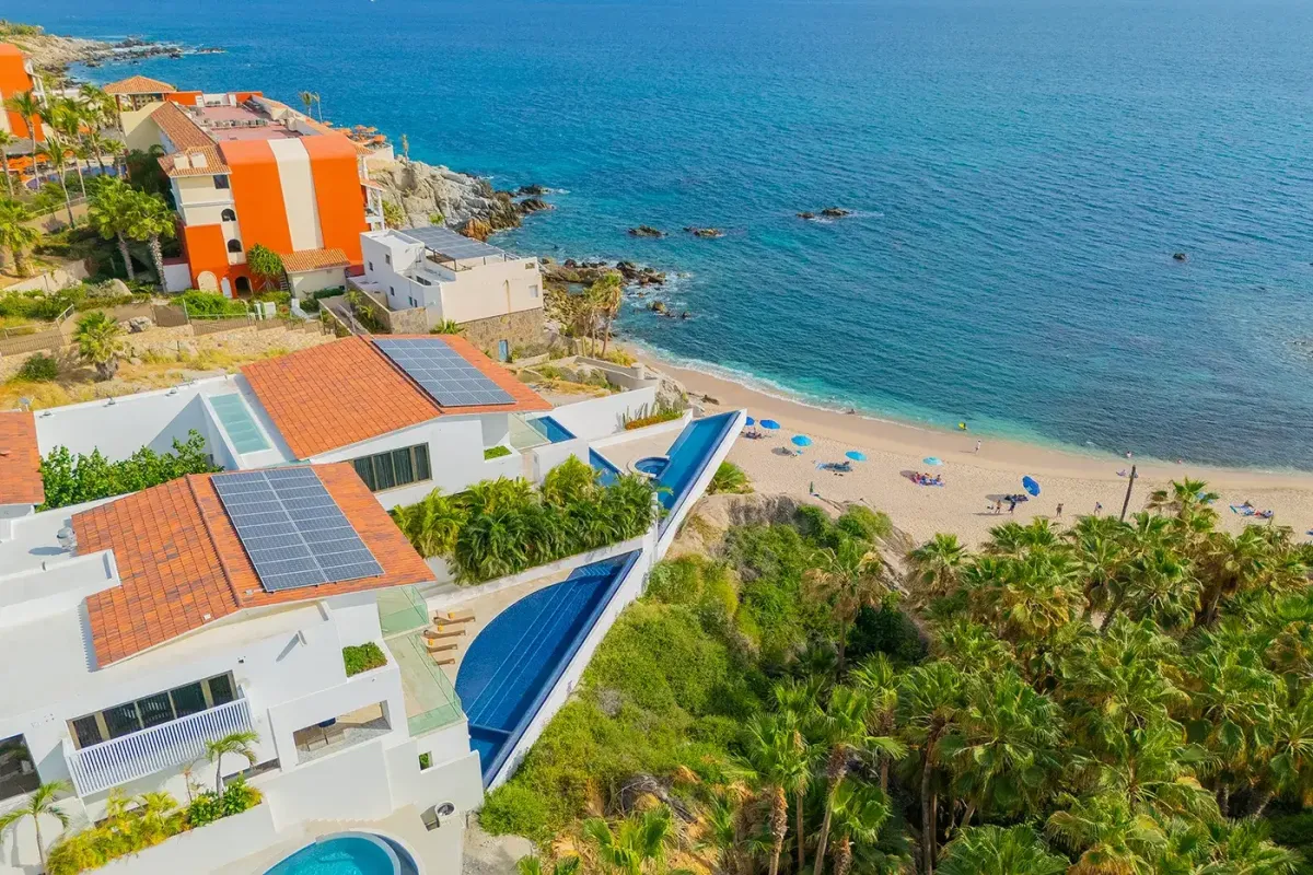 Villa Palma and Villa Mareas together create one of the most extraordinary beachfront luxury retreats in Los Cabos. Located side by side along a rare swimmable beach in the exclusive Cabo Bello corridor, these two stunning estates offer the perfect setup for large groups, multi-generational families, corporate retreats, or milestone celebrations seeking space, privacy, and elevated design. When reserved together, the villas provide expansive indoor-outdoor living, seamless group flow, and breathtaking Sea of Cortez views from nearly every room.