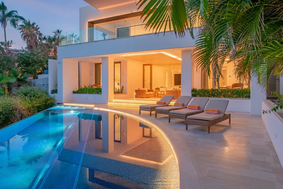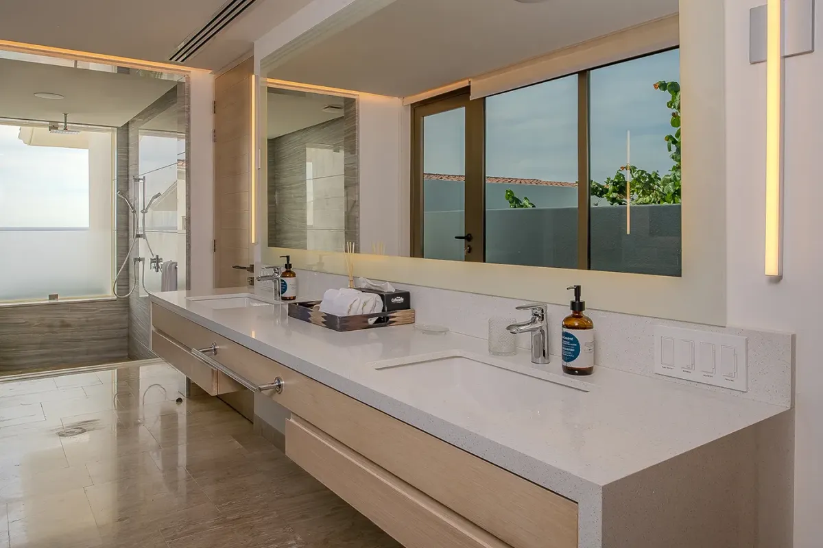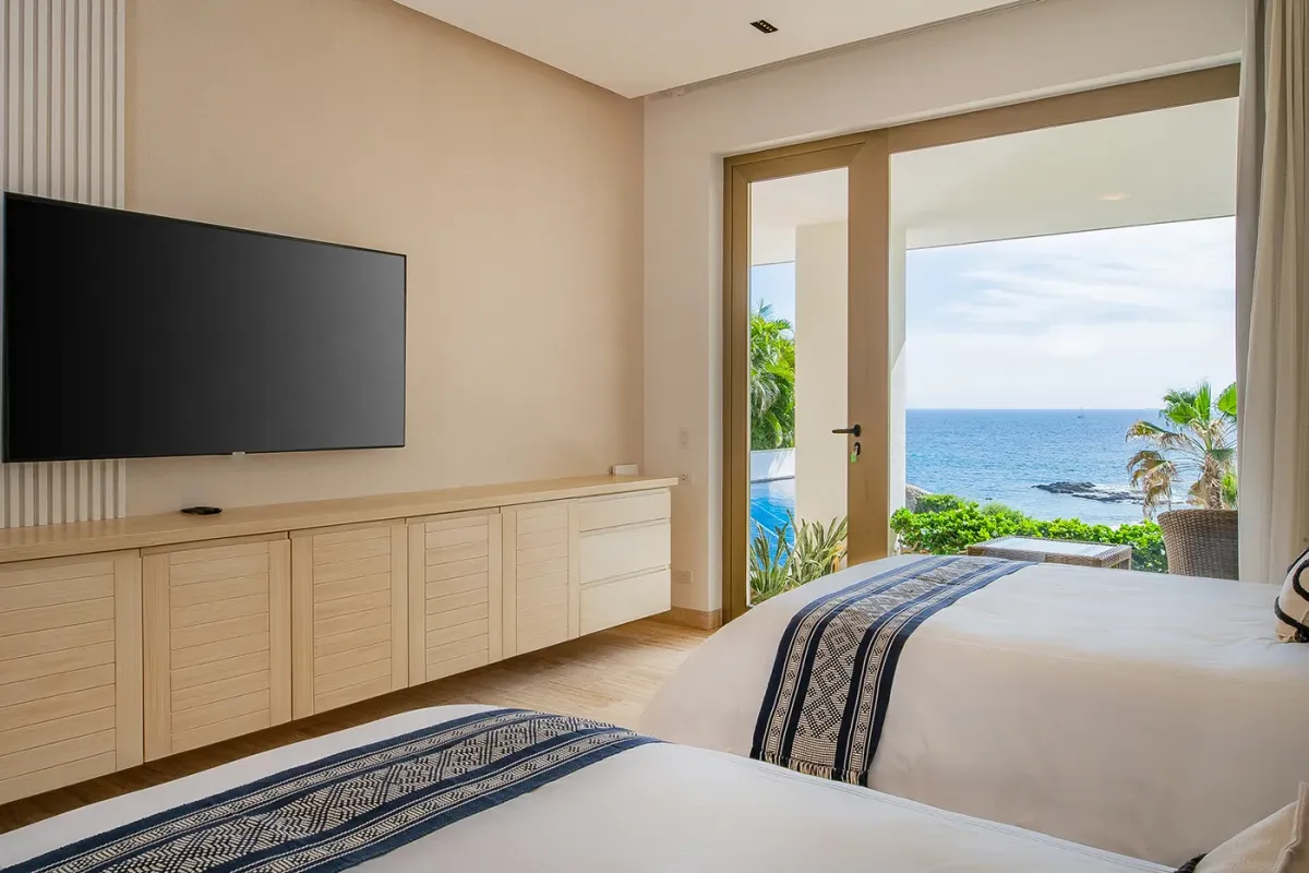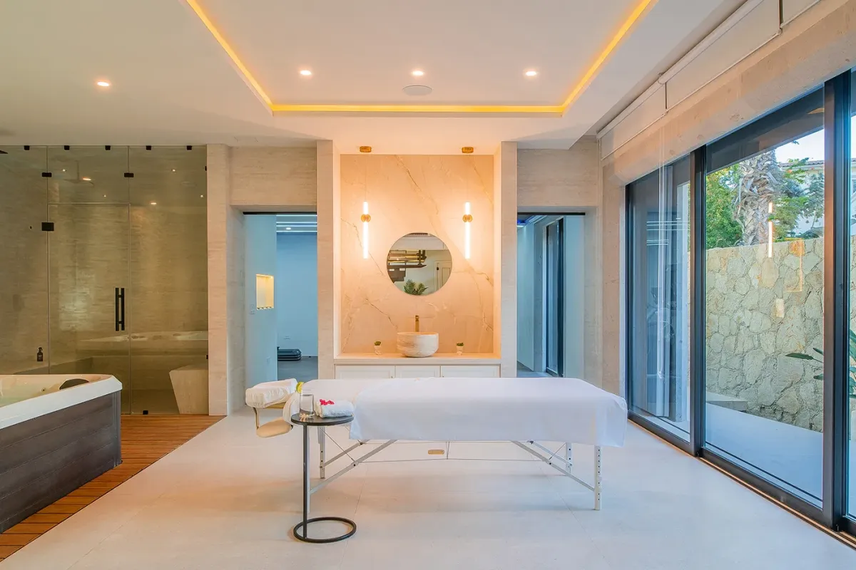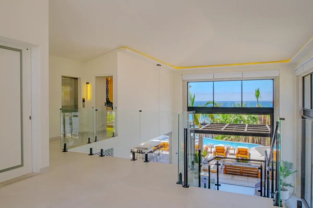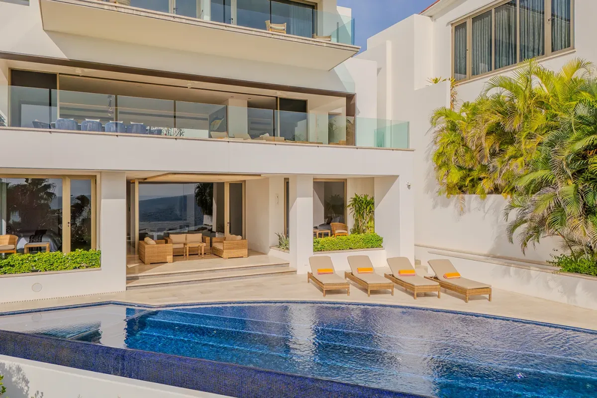 Villa Palma welcomes guests with a warm, contemporary coastal design centered around tranquility and connection, featuring a serene courtyard, beautifully appointed living spaces, and ocean-view suites designed for relaxation. Next door, Villa Mareas delivers sleek, modern luxury with dramatic architecture, floor-to-ceiling glass, and a resort-style atmosphere highlighted by an infinity-edge pool, private spa with steam room, cold plunge, and Jacuzzi, and state-of-the-art fitness and entertainment spaces. Together, the villas strike a perfect balance between refined comfort and high-end indulgence.