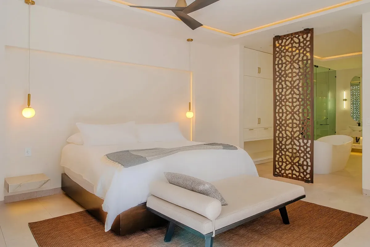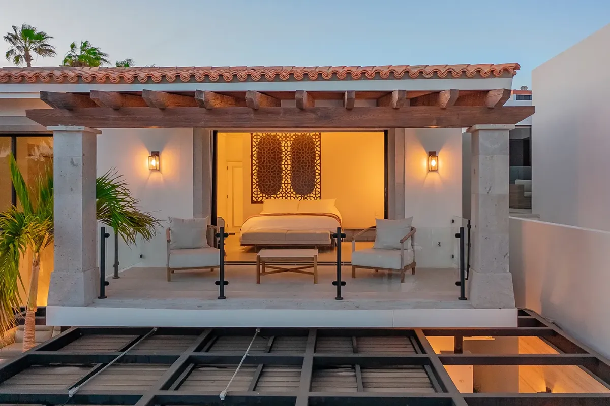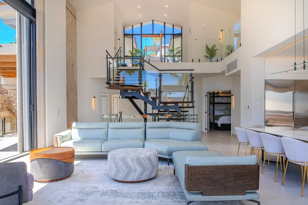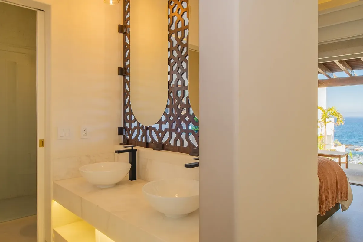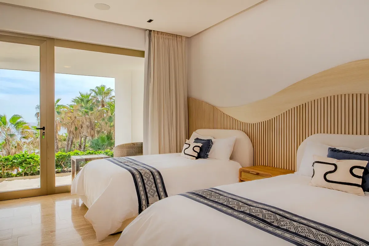 Villa Palma welcomes guests with a warm, contemporary coastal design centered around tranquility and connection, featuring a serene courtyard, beautifully appointed living spaces, and ocean-view suites designed for relaxation. Next door, Villa Mareas delivers sleek, modern luxury with dramatic architecture, floor-to-ceiling glass, and a resort-style atmosphere highlighted by an infinity-edge pool, private spa with steam room, cold plunge, and Jacuzzi, and state-of-the-art fitness and entertainment spaces. Together, the villas strike a perfect balance between refined comfort and high-end indulgence.
