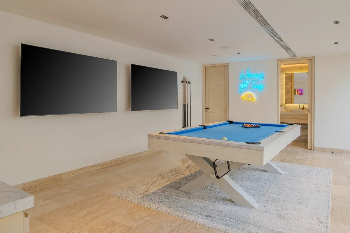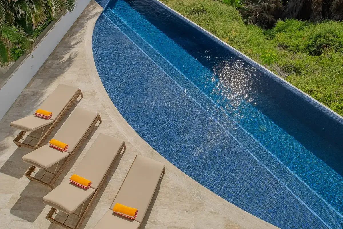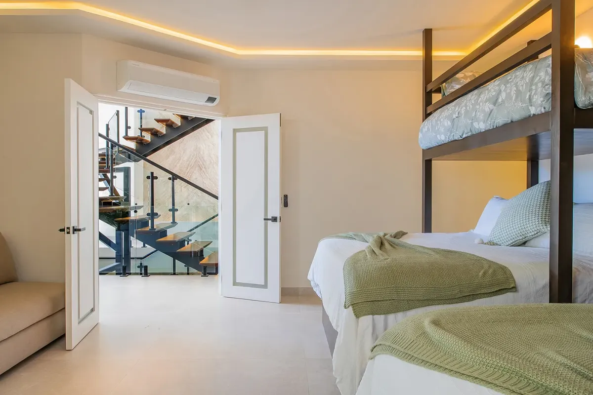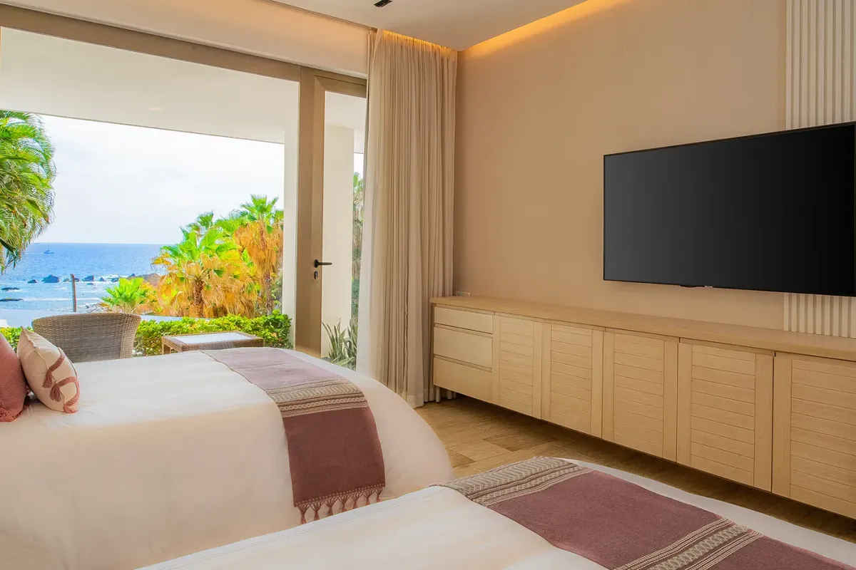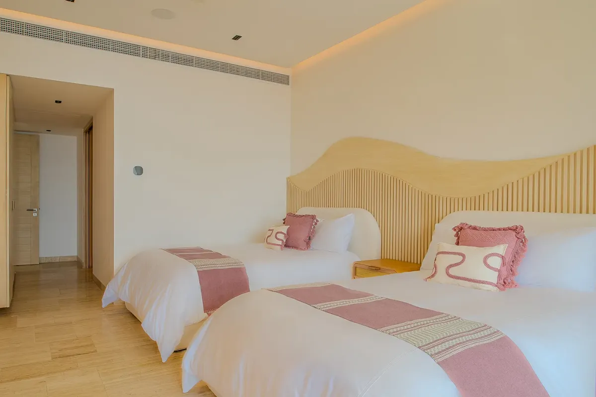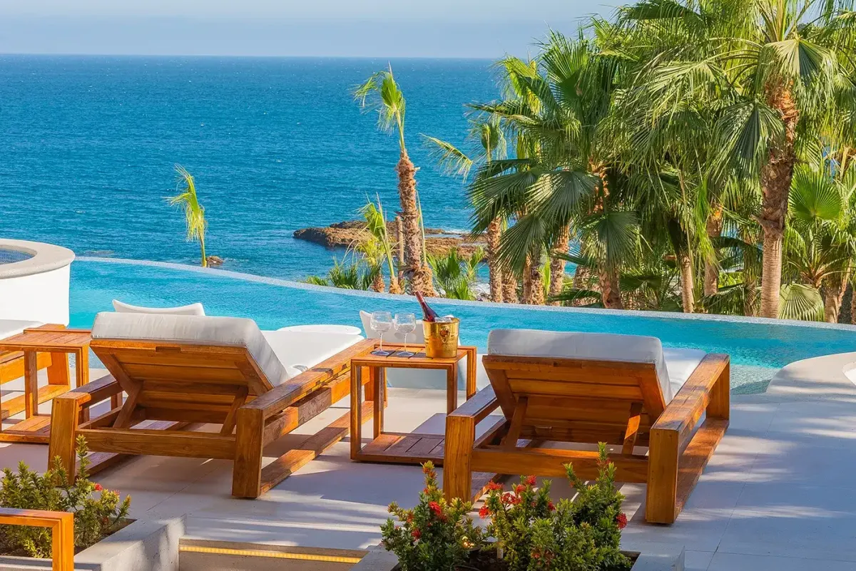 Villa Palma welcomes guests with a warm, contemporary coastal design centered around tranquility and connection, featuring a serene courtyard, beautifully appointed living spaces, and ocean-view suites designed for relaxation. Next door, Villa Mareas delivers sleek, modern luxury with dramatic architecture, floor-to-ceiling glass, and a resort-style atmosphere highlighted by an infinity-edge pool, private spa with steam room, cold plunge, and Jacuzzi, and state-of-the-art fitness and entertainment spaces. Together, the villas strike a perfect balance between refined comfort and high-end indulgence.