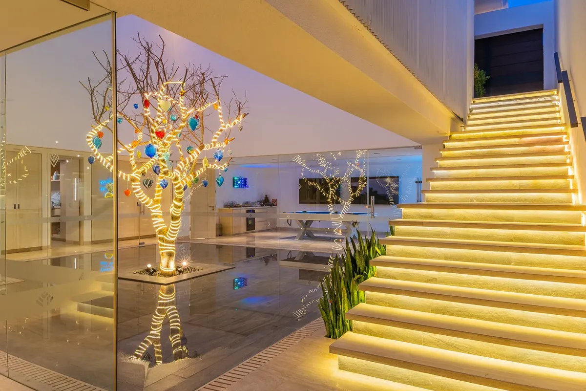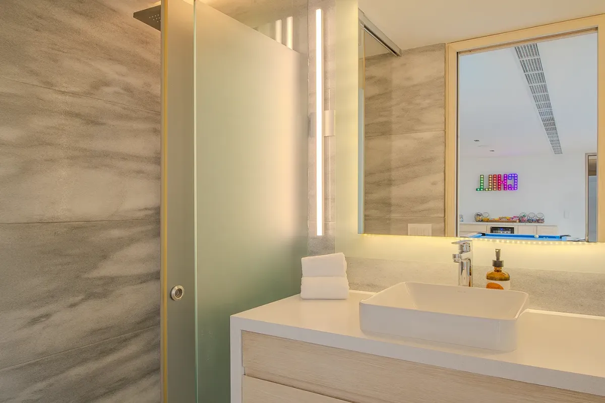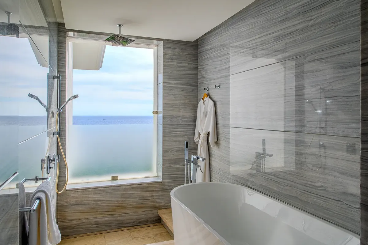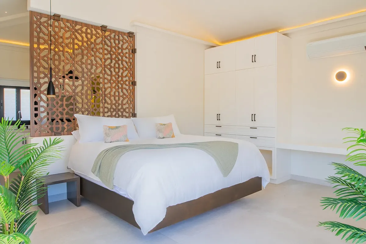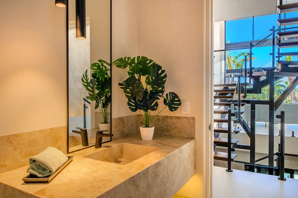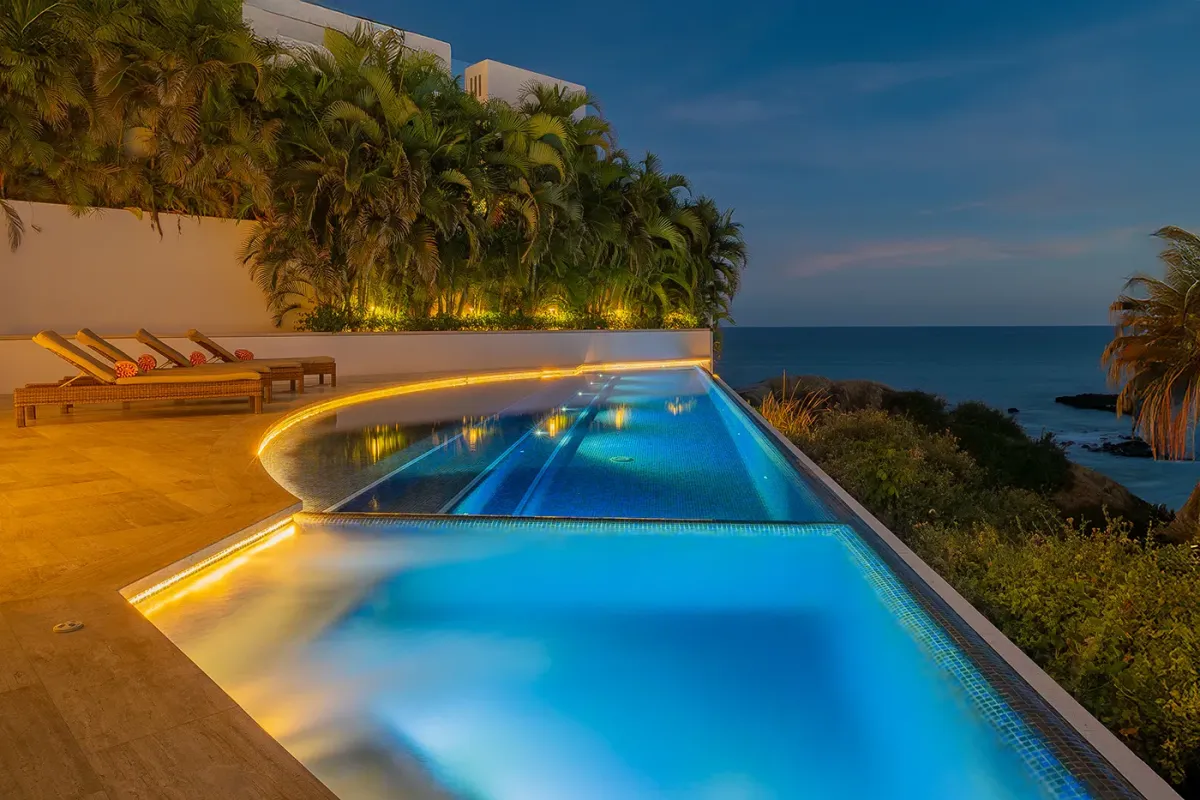 Villa Palma welcomes guests with a warm, contemporary coastal design centered around tranquility and connection, featuring a serene courtyard, beautifully appointed living spaces, and ocean-view suites designed for relaxation. Next door, Villa Mareas delivers sleek, modern luxury with dramatic architecture, floor-to-ceiling glass, and a resort-style atmosphere highlighted by an infinity-edge pool, private spa with steam room, cold plunge, and Jacuzzi, and state-of-the-art fitness and entertainment spaces. Together, the villas strike a perfect balance between refined comfort and high-end indulgence.