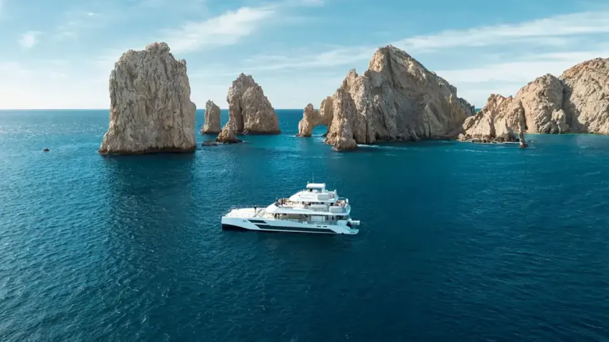 Cruise past the Arch, Land’s End, Lover’s Beach, and Pelican Rock while taking in the dramatic granite cliffs and the famous “Rich & Famous” shoreline, home to world-class resorts and stunning oceanfront estates. During daytime cruises, the catamaran anchors in one of Cabo’s beautiful Blue Flag bays, where calm, crystal-clear waters invite guests to swim, snorkel, or simply relax and enjoy the scenery. In the winter months, whale sightings are common, adding an unforgettable element to the journey.